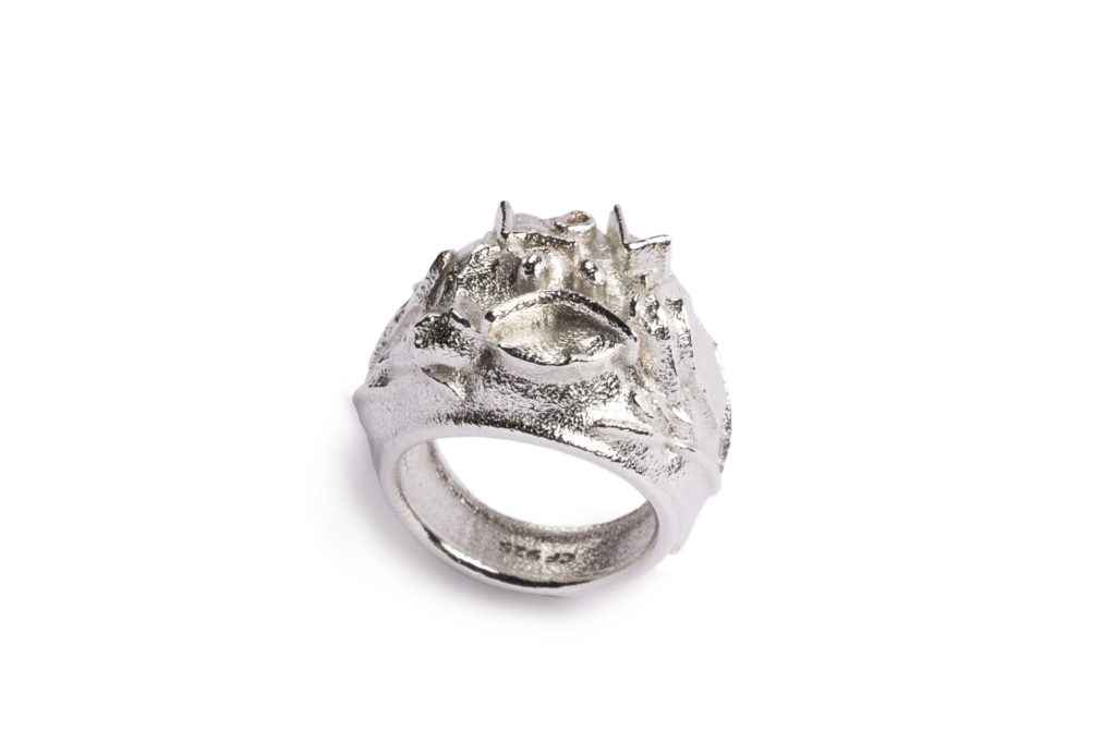 Other contemporary jewelry-medium artists are also out to make wearable statements. One such artist is Estonian artist Darja Popolitova. Her recent “Save As” collection was meant to send a direct message about the mass-produced jewelry industry. Her work makes clear use of Dadaist elements while her medium – 3D printing – is a high-tech development on the form. Her pieces started as found 3D printing designs that she then extorted and modified, also incorporating a performative element as she filmed dramatized and stylizing scenes of much of the process. All these added elements help to define her jewelry as wearable art.